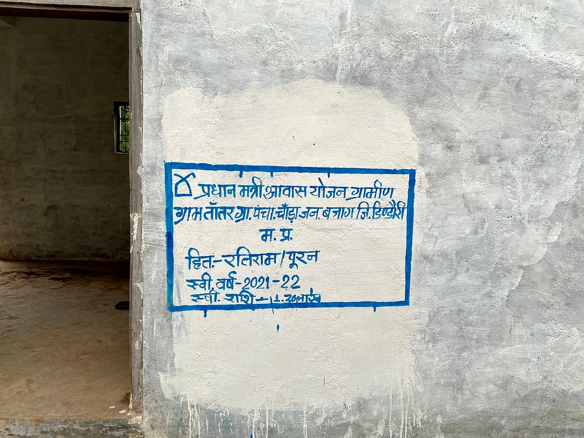 In the video, it is seen that a small partially completed house under PM Awas Yojana has names of two beneficiaries. The name plate at the entrance reads-- Geeta Bai-- a tribal, whereas the one at the backdoor shows the house was allotted to Ratiram.