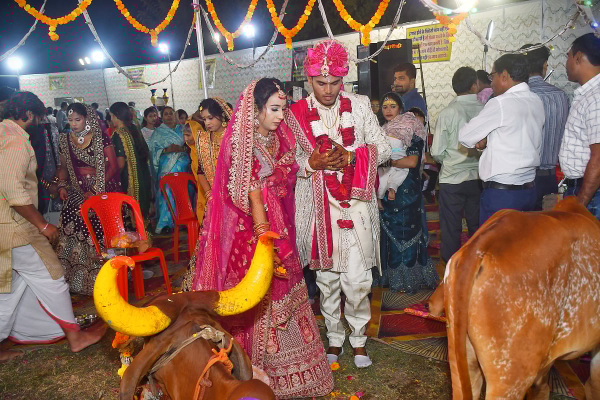 Unlike typical weddings filled with modern music and extravagant decorations, this ceremony focused on religious rituals. A special stage was adorned solely for a cow and her calf, emphasising the family's commitment to cow protection. The event commenced with the worship of the cow, accompanied by the chanting of Vedic mantras, as guests sang "Om Namo Bhagwate Vasudevay" instead of loud film songs.