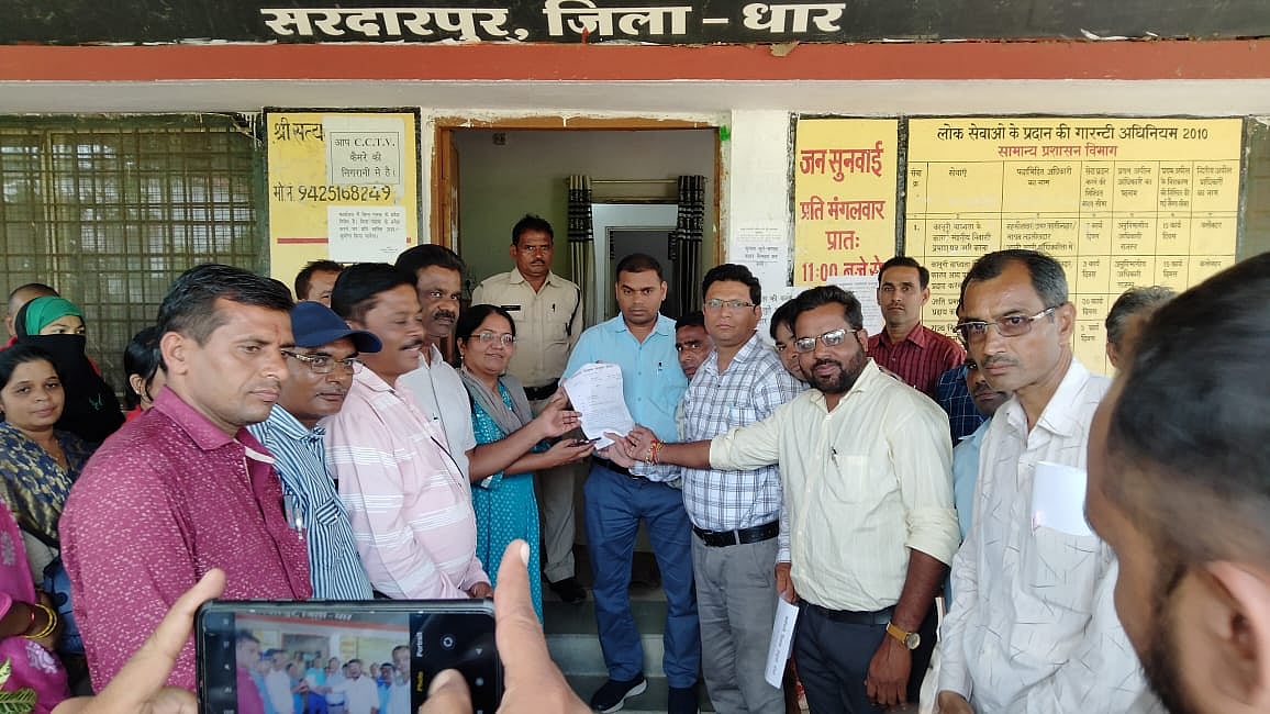 Sardarpur (Madhya Pradesh): Members of Sanyukt Karmachari Sangh paid tributes to school teacher Sumitra Parmar who died under mysterious circumstances on Saturday.