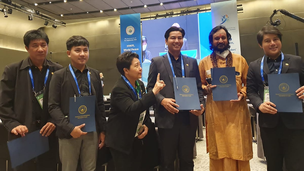 Ujjain (Madhya Pradesh): As soon as Juna Akhara Mahamandaleshwar Swami Shaileshanand Giri from Ujjain reached South Korea, the atmosphere became Shiva-like with the proclamation of `Jai Mahakal’ in the Sarva Dharma Vishwa Shanti Sabha.