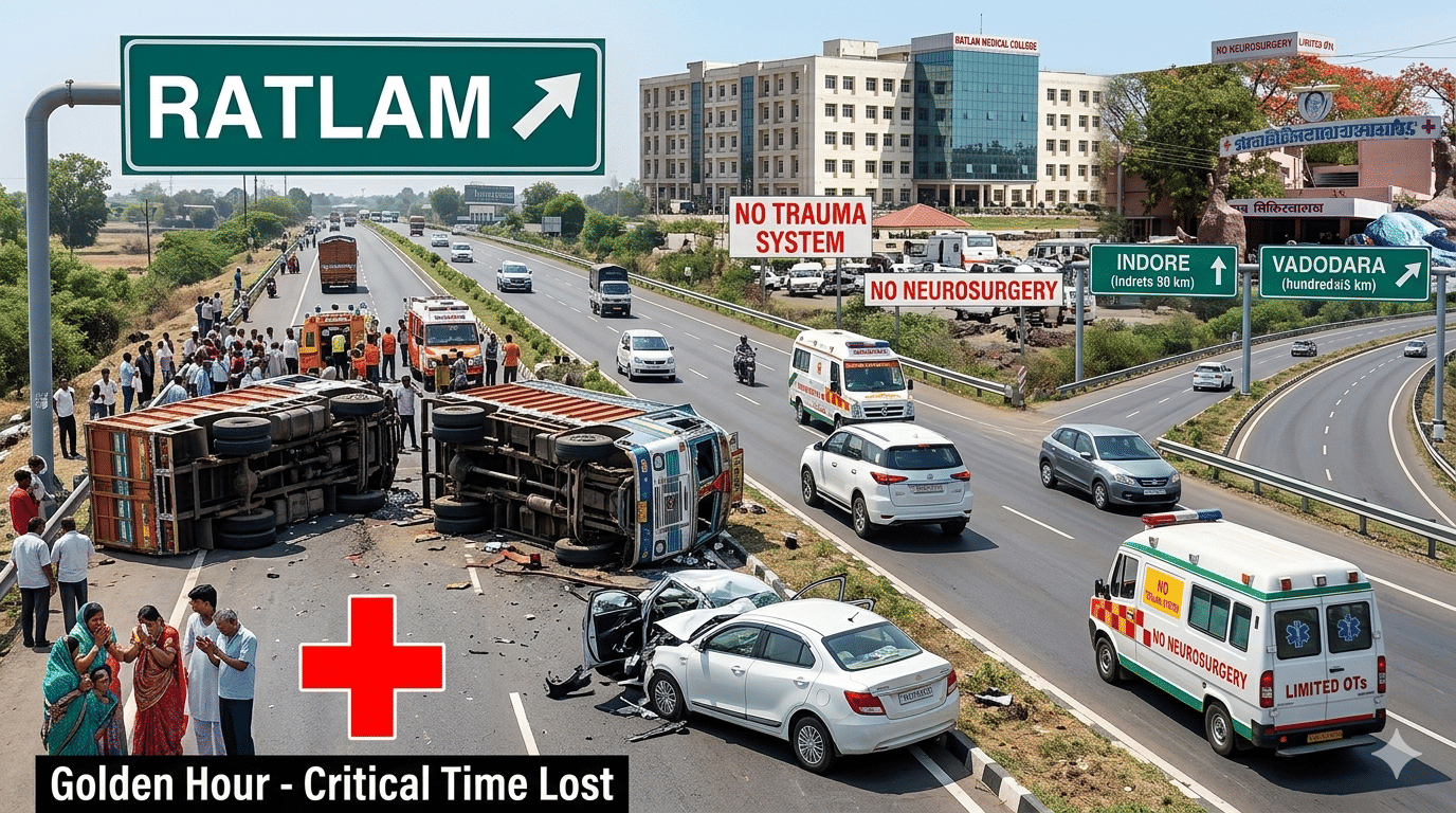 Ratlam (Madhya Pradesh): Rapidly expanding road networks and rising traffic have turned Ratlam into a high-risk accident zone, while the absence of a fully functional trauma care system continues to cost lives during the crucial golden hour.