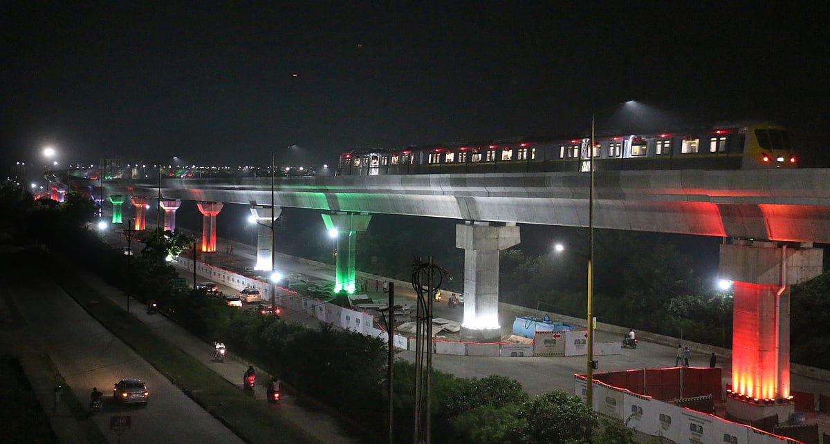 The entire Gandhi Nagar station had been decked up with flowers. There was a lot of excitement among the people to see the Metro train running on the track.