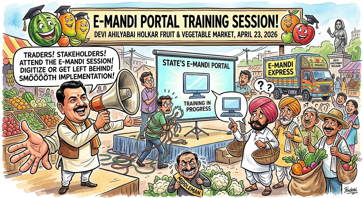 Indore (Madhya Pradesh): The state government’s e-mandi initiative is set to digitise market operations and eliminate the role of middlemen, ensuring maximum benefits for farmers. A specialised technical team is scheduled to visit the Devi Ahilyabai Holkar Fruit and Vegetable Market on April 23 to explain the intricacies of the portal to stakeholders.