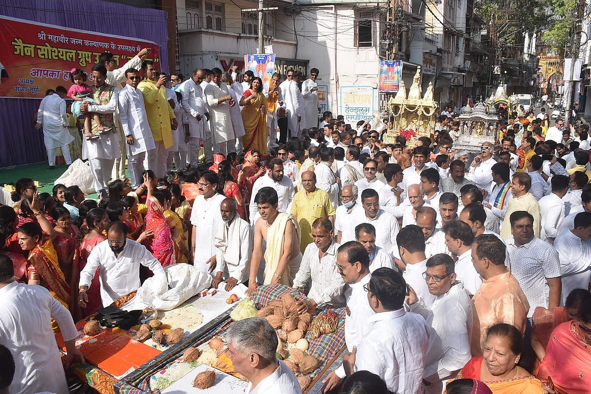 Mahavir Jayanti was celebrated in a grand manner by the Samagra Jain Samaj with unprecedented gaiety and devotion. A procession was taken out from Shri Mahavir Tapobhoomi at 4.30 pm in which a large number of people participated. The procession started with a band performance and music. The procession had 108 silver chariots adorned with Dharma Dhwaja and children were dancing and singing behind it. The procession started from Mahaveer Tapobhoomi and again reached Mahavir Tapobhoomi via Raghopipalia crossroads, where rituals like ‘shri ji ka abhishek’ and ‘shanti dhara’ were held. In the evening, a programme of Padma Prabhu Chalisa, Guru Bhakti and Lord Mahavir Swami swinging on a silver rug was organised by Acharya Pragyasagar Maharaj. It was followed by a community feast.