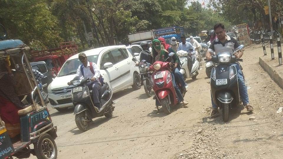 Indore (Madhya Pradesh): Commuters at Chanakyapuri Square were caught in severe traffic congestion on Thursday after unauthorised road digging for gas and water pipelines led to a massive gridlock, leaving several vehicles stranded for over an hour.