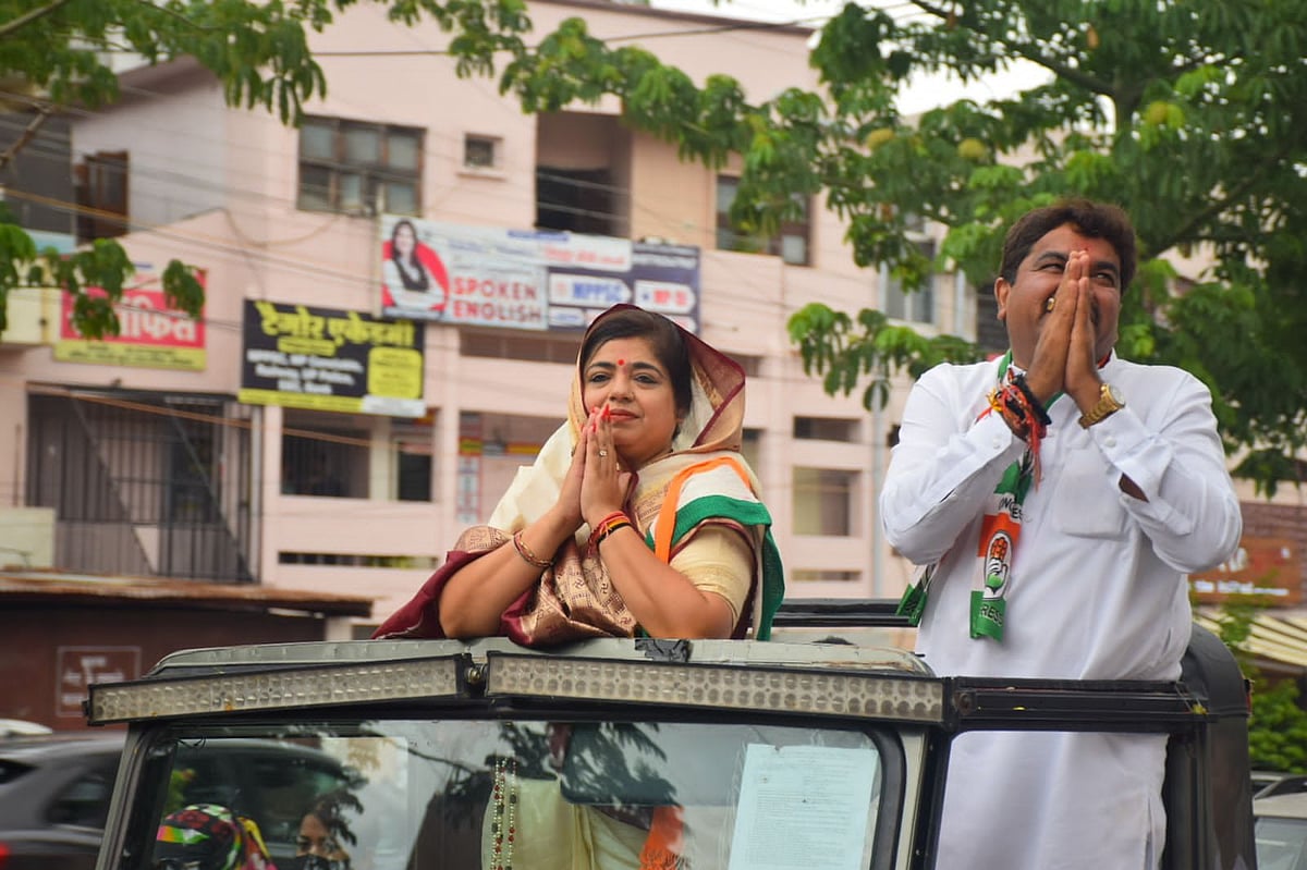 As no schedule of any big party leader, Congress mayoral candidate Sanjay Shukla started campaigning with his wife Anjali Shukla.