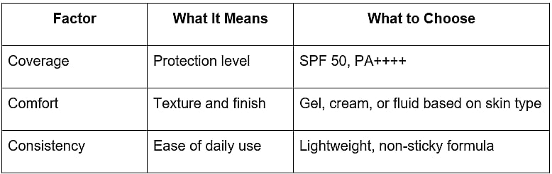 If you are unsure how to select sunscreen for face, look for the following factors:
