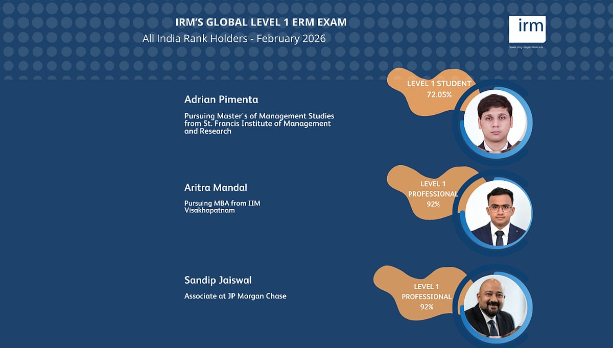 Speaking on the results, Kosha Parekh, Director - Academics, stated: “Our heartfelt congratulations to all the February 2026 candidates who cleared the Global Level 1 ERM examination. At IRM India Affiliate, we remain committed to empowering the next generation of professionals with the knowledge, resilience, and foresight required to thrive in an ever-evolving risk landscape. By strengthening their expertise in ERM, these individuals are equipping themselves to make informed decisions, embrace uncertainty, and create sustainable value across organizations.”