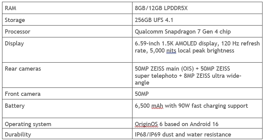 Recently launched in India, the vivo V70 5G delivers exceptional performance, thanks to the Snapdragon 7 Gen 4 chip and the LPDDR5X high-performance memory. It can also click studio-grade photos, thanks to the segment-best imaging system featuring a 50MP ZEISS OIS main camera, a ZEISS ultra-wide-angle lens, and a 50MP ZEISS night telephoto camera.