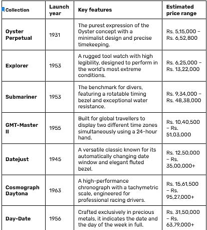 Choosing a Rolex involves understanding the heritage and specific purpose of each legendary collection. Below is a breakdown of these iconic timepieces along wit their estimated price ranges in India for 2026.