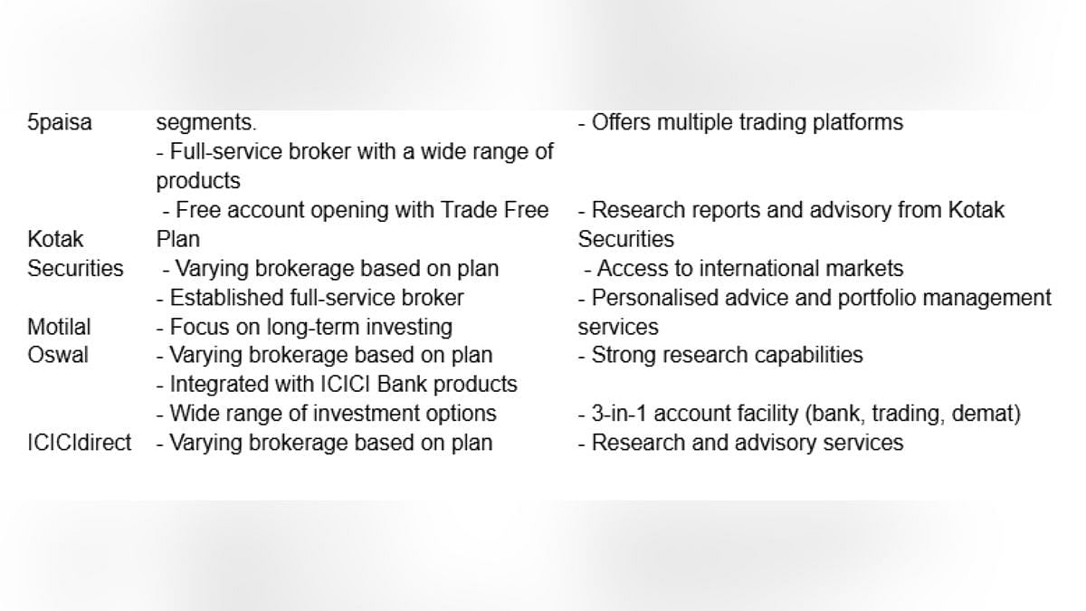 Below is a list of top brokers for demat accounts in India based on their basic features and special features: