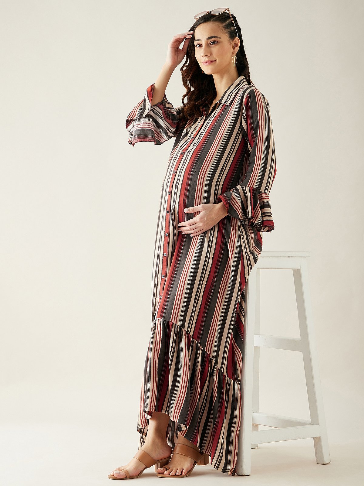 Flared Kaftans midis come in free size and can easily accommodate a growing bump, and are the perfect outing dress even post-delivery. Those living in warmer places must invest in midi Kaftans to sail through the summers. For more comfort and breathability, go for a cotton Kaftan so that you can use this piece for an outing with friends or family. You can opt for a Kaftan midi with a front open zip or buttons for post-pregnancy nursing. Choose bright floral prints with happy colors, which can also brighten you and the baby.