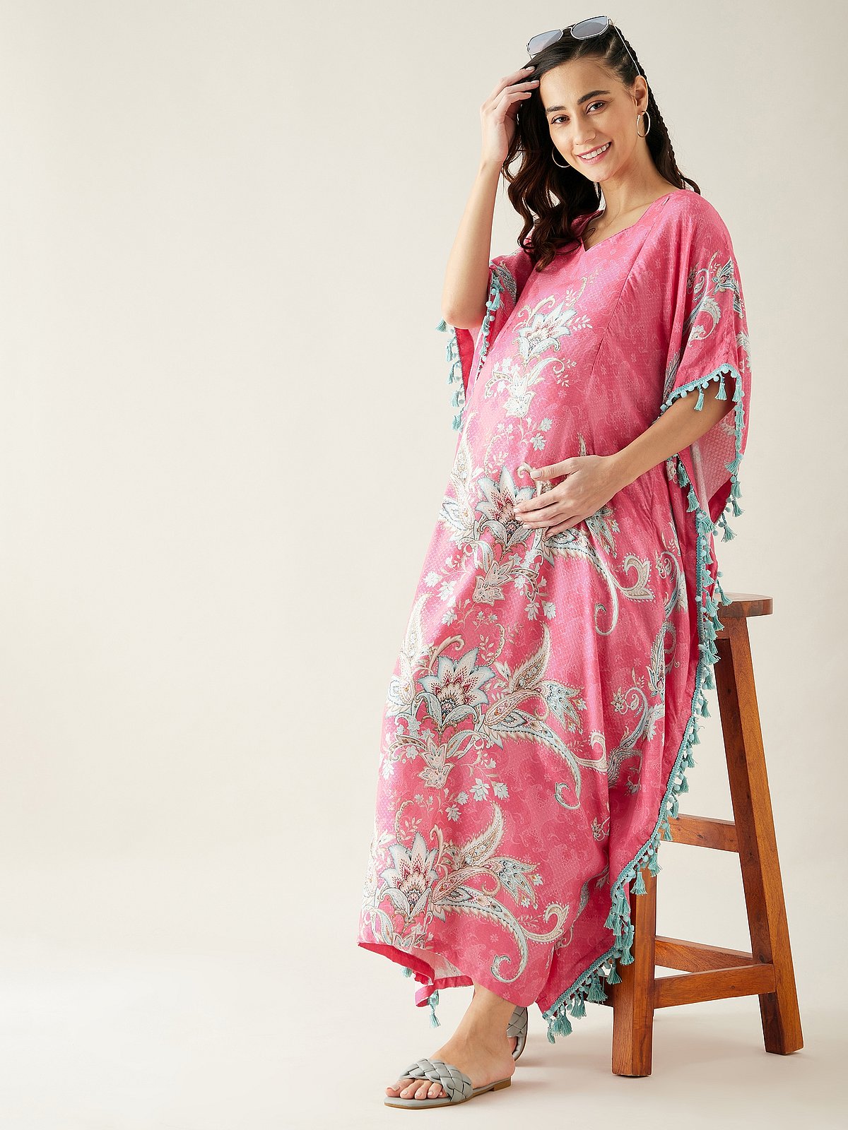 Maternity fashion has drastically evolved in the past few years! Gone are times when women would want to hide their baby bumps using stoles and lose kurtas. The modern-day moms-to-be and new moms are bold and fashionable yet prefer to wear anything light, flowy, and comfortable, which helps to enhance their bumps and the ease of feeding the newborns. What better than Kaftans to dress stylishly during this phase?