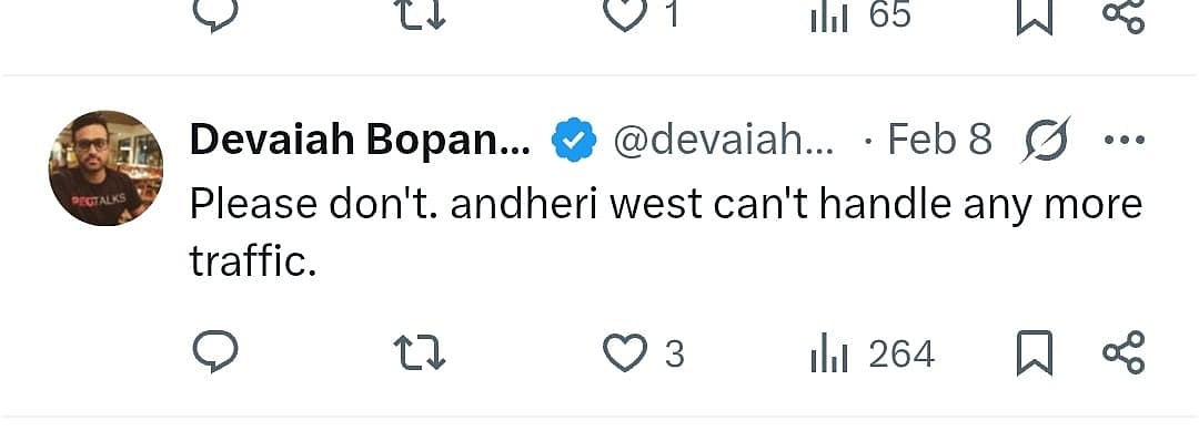 Another user commented, "Please don't. andheri west can't handle any more traffic."