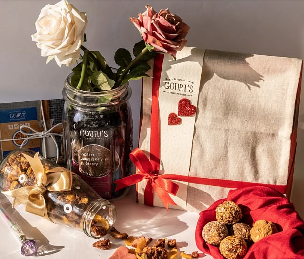 What: This Valentines Day shower your loved ones - kids, best friends, co-workers, your partner - by wrapping up nutritious and specially curated Valentine’s Day hampers curated by Gouris Goodies. Spoil your favourite one with our limited edition hamper filled with - Dark Chocolate Granola, an assortment of Happy Ladoos and a range of energy bars. Each product is made from nutrient-rich, wholesome ingredients that will help you and your loved ones maintain a well-balanced and sustainable lifestyle. The Valentine hamper is the perfect gift for the body, the soul.