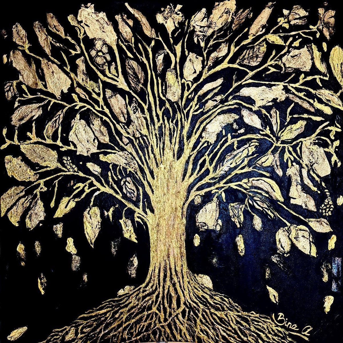 ‘Alchemy of Light’ explores metal leafing as a medium where the alchemy of metal reveals a deeper narrative of inner illumination. The metal becomes a metaphor for inner transformation. This is not just art to be seen but something to be felt.