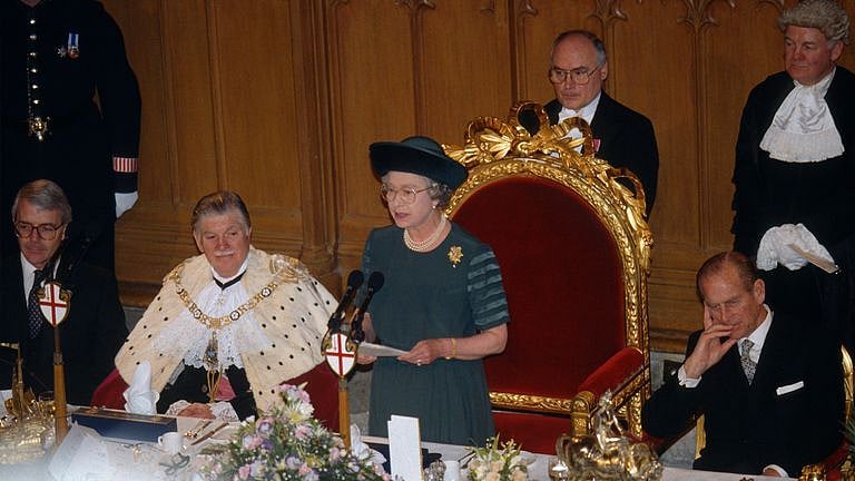 On the morning of 20 November 1992, a builder’s lamp had set fire to a curtain in Windsor Castle’s private chapel and by nightfall, much of the Queen’s family home was in ashes. This unfortunate incident had come during the same year in which the Queen had seen the marriages of her three eldest children collapse. A mere four days later, the Queen attended a long-planned civic luncheon at Guildhall in the City of London to mark her forty years on the throne and she stated that ‘Nineteen ninety-two is not a year on which I shall look back with undiluted pleasure. I, sometimes wonder how future generations will judge the events of this tumultuous year. I dare say that history will take a slightly more moderate view than that of some contemporary commentators,’ of my more sympathetic correspondents, it has turned out to be an “annus horribilis”.