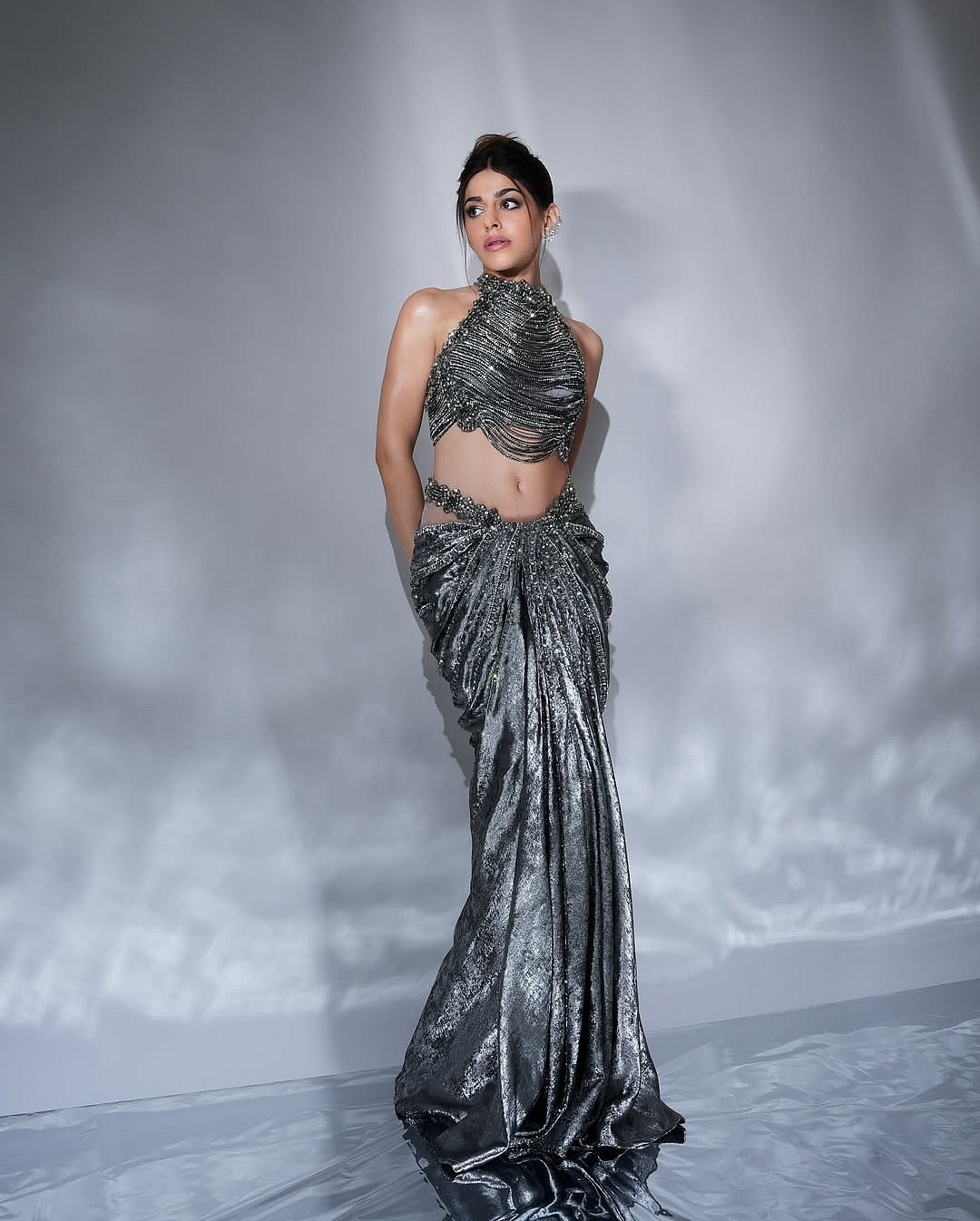 It’s not enough to pick one gleaming piece, this season, it’s all about layering shine. Bollywood actresses are pairing fully sequinned sarees, lehengas or co-ords with matching blouses and rich accessories. The look is nothing but a bejewelled masterpiece from head to toe. With celebs like Khushi Kapoor and Kareena Kapoor already spotted in sequinned sarees, the message is clear: if you don’t sparkle, you won’t shine. For your own look, pick a sequinned skirt, match it with a tone-on-tone blouse and light jewellery, let the outfit grav eyeballs.