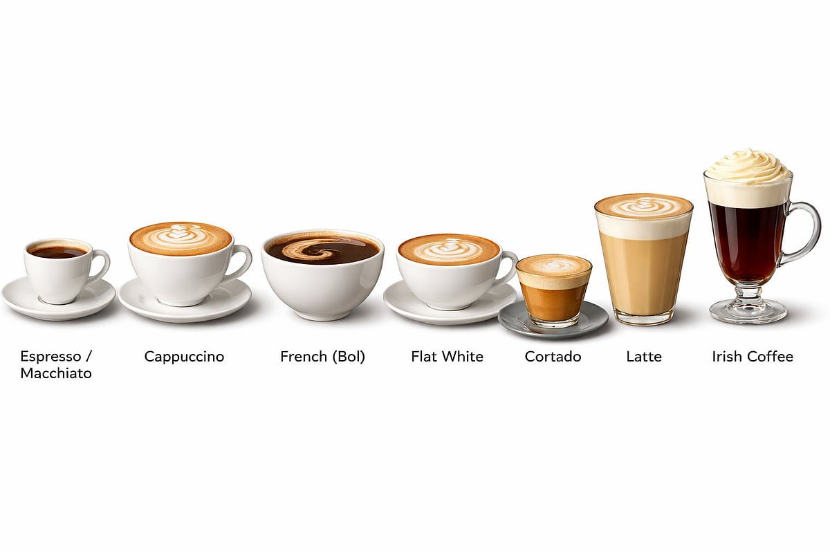 Latte: Typically wider than a cappuccino cup, the shape of this cup makes it easier to pour steamed milk over the espresso.