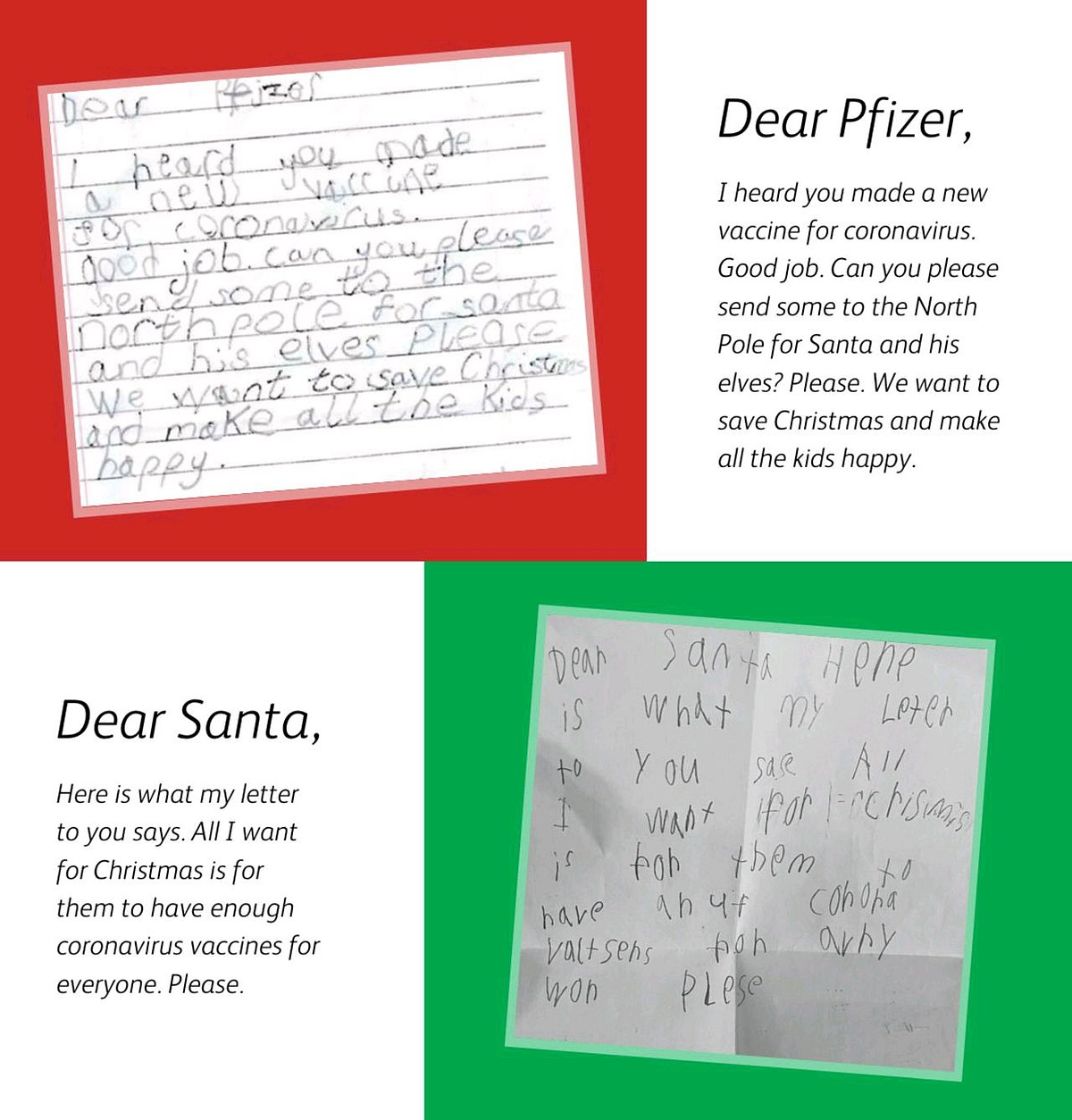 But not every child is primarily concerned about their odds of getting presents. One six-year-old boy from Glanmire in Ireland for example recently wrote to Pfizer wondering if it would be possible for the company to send vaccines to Santa and his elves. Another child said that all he wanted for Christmas was for everyone to get a vaccine.