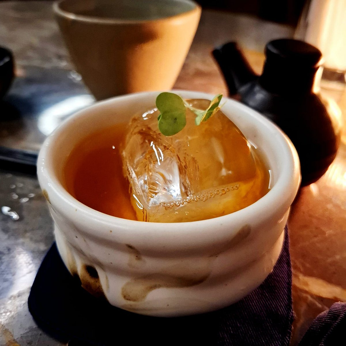 And I move on to my next cocktail while I wait for the next dish. Ume Sour – Fruity, sweet start, which is tempered by the vegan foam. This plum-infused-gin-based cocktail is gin’s answer to the whisky sour. Finishes sour thanks to the lemon, umeshu, and umeboshi. If they use a little less amaro and lime, the flavours of the Japanese elements will come across better.