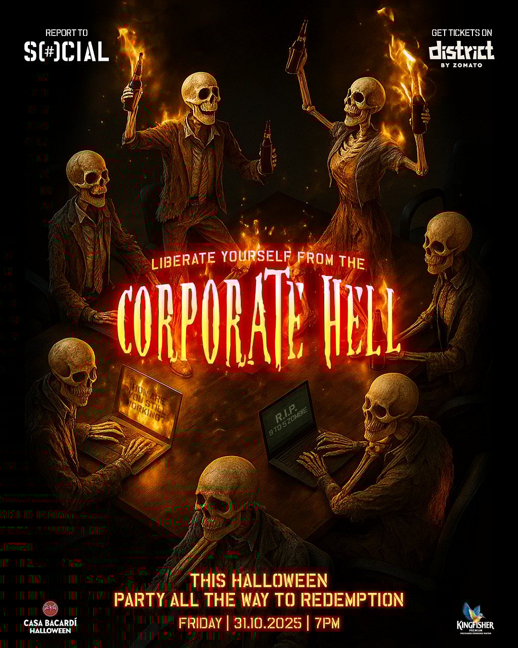 With Escape from Corporate Hell, SOCIAL turns workplace burnout into the ultimate spooky evening this Halloween. Aside from cheeky satire and immersive “haunted office” decor, expect the CTRL + ALT + BOO cocktail menu, which includes drinks like Error 404: Soul Not Found and Micromanaged. Clock out, put on your mask, and celebrate like your appraisal depends on it this Halloween.