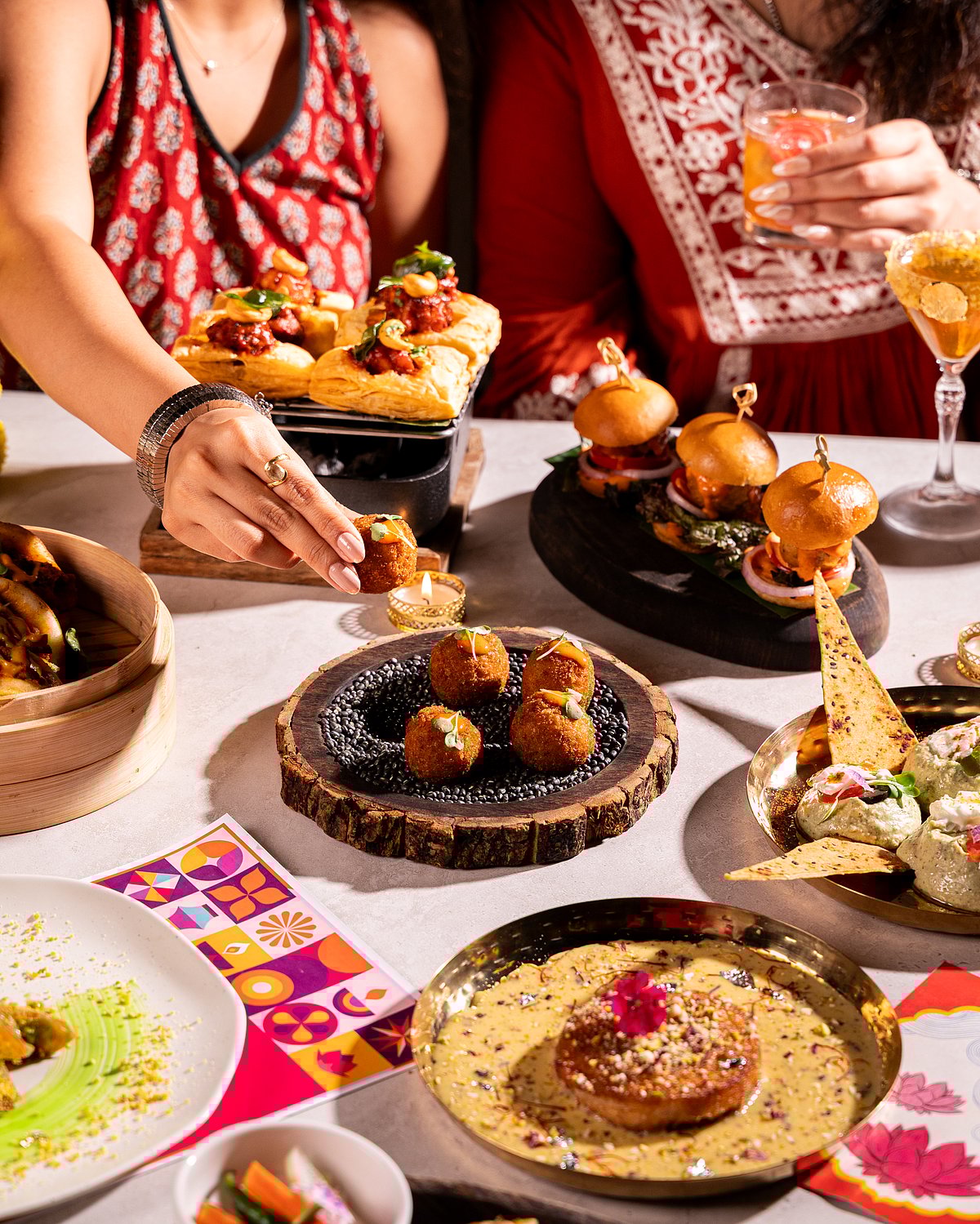 Casual and vibrant, Cafe Out of the Blue introduces an Indo-Continental brunch for Diwali that mixes Indian flavours and global plating. Dishes like Butter Chicken Pasta and Thandai Baklava share the menu with Vegetable Biryani Arancini and Rasmalai Tres Leches Cake. It is ideal for a fun friends-gathering over the festive weekend.