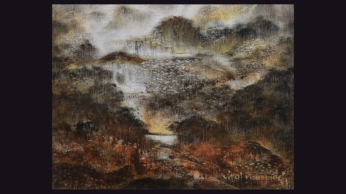 Vittal was born and raised in a region that was troubled by water scarcity, which had immense impact on him and his creations. His paintings are devoid of rich and bright colours. Instead, it is a pleasant mix of subtle earthy tones to portray ‘dry beauty’.
