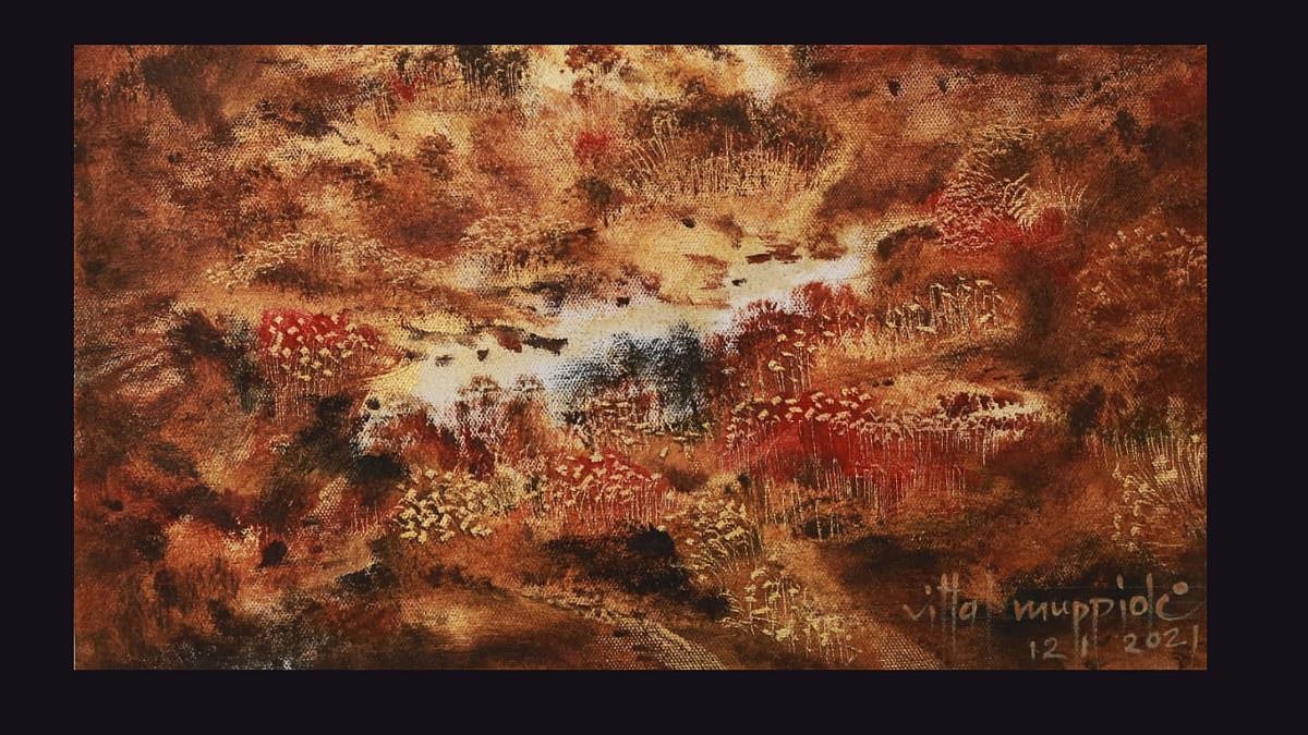 Abstract paintings redefine the world of the artist, which they have either witnessed or imagined. Paintings by Muppidy Vittal transport viewers to farmlands in Telangana, where he draws inspiration from. Being a farmer, Vittal's paintings present vignettes of scenes from his village and narrate a story of sorts from a farmer's life.