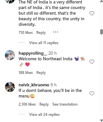 One user wrote, "welcome to India northeast Nagaland." Another user commented, "In Nagaland, they eat anything and everything. You can check out the Mao or BOC market to see what all they sell. It’s crazy!"