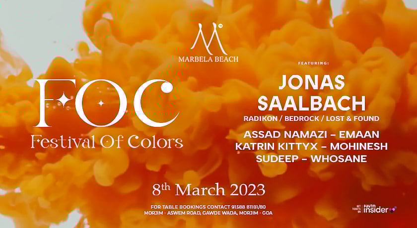 A day-to-night Holi party featuring banging music from German world-touring DJ Jonas Saalbach, Assad Namazi, Emaan, Katrin Kittyx (Russia), Mohinesh, Sudeep and Whosane.