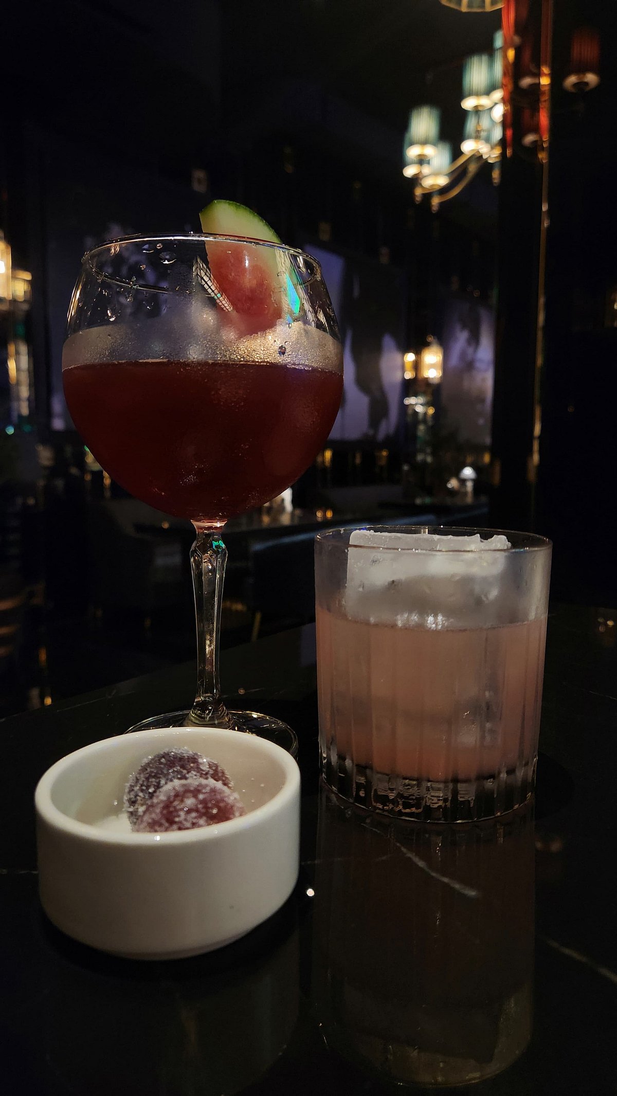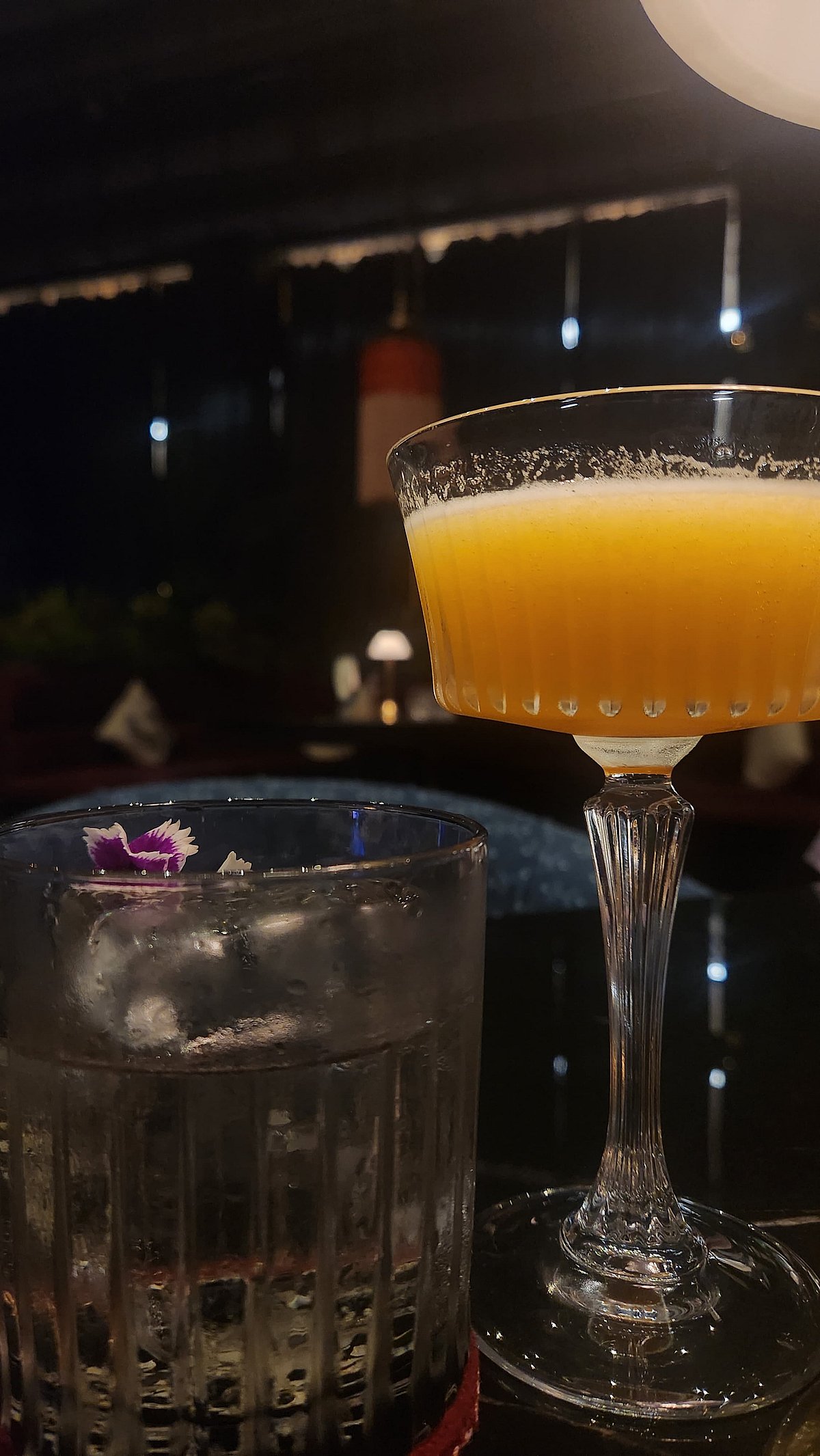 We paired our meal with a mix of mocktails and cocktails to complement the flavours on our plates. First up was the Sun Sipper, a smooth blend of gin and soju, muddled grapes, and Campari. We savoured the drink slowly — it opened with the aromatic scent of gin, then transitioned into a bittersweet grape aftertaste. It flowed effortlessly, making it a great choice for those who prefer drinks that slip down smoothly.