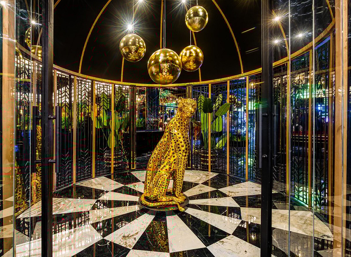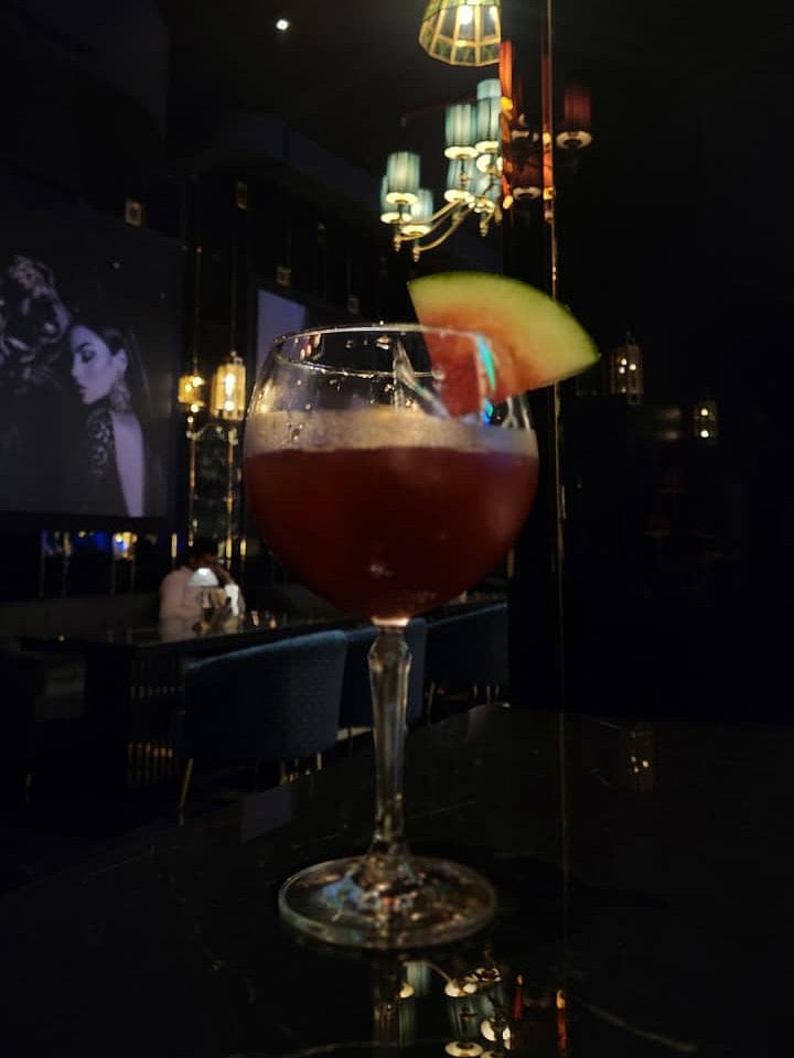 From the moment you step in, the Art Deco-inspired interiors grab your attention. The space features black marble floors, gold-trimmed archways, rich emerald lighting, and a custom 360° island bar at the centre set the stage for an evening that's as visually striking as it is fun. The plush lounge seating, stunning chandeliers, and intimate nooks make it ideal whether you're out with friends, a date, or just looking for a playful night out.