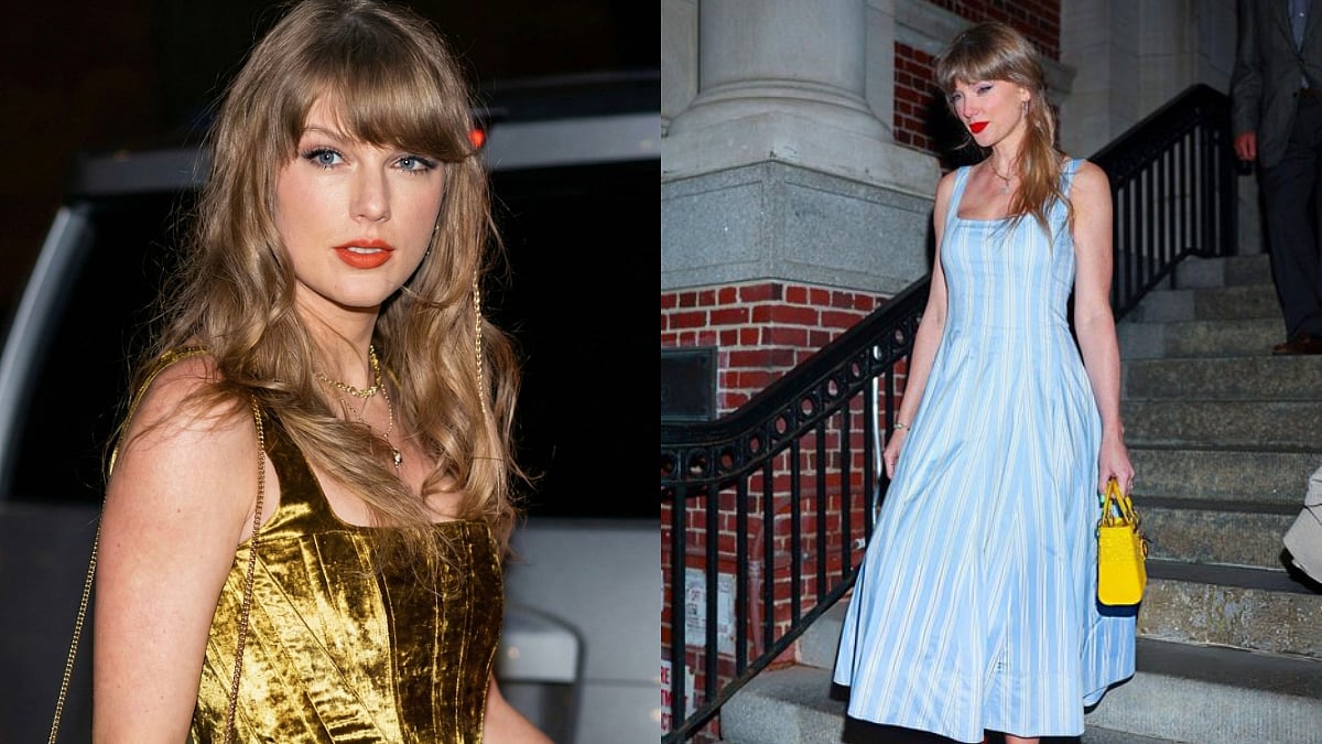 Taylor Swift was recently spotted in NYC with her father and Ashley Avignone on April 27 in a breezy summery dress. Taylor wore a blue-and-white pinstripe midi dress from Nordstrom, reportedly priced at around $325 (approx. ₹27,000).
