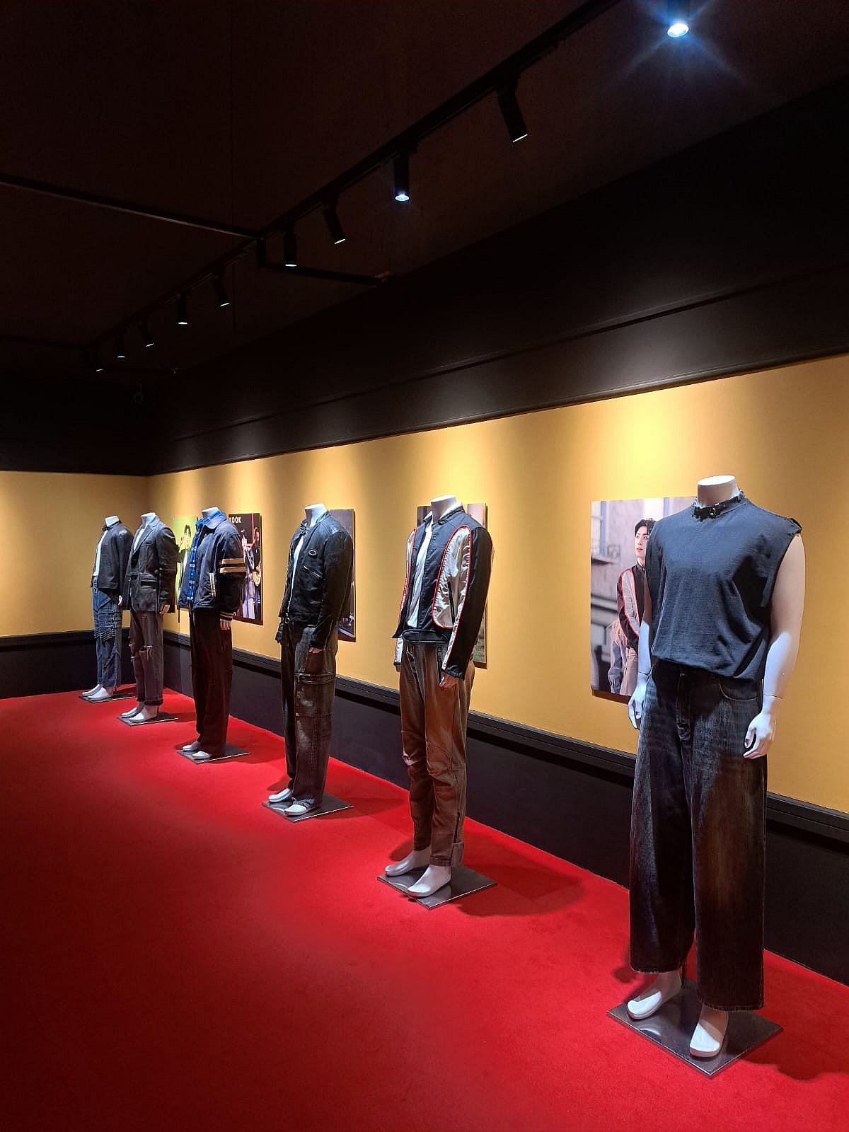 One hallway is devoted to Jungkook’s Golden album promotions, featuring music videos and the original outfits from his most memorable stage performances. The space captures his solo era with photoshoots, show appearances, and cherished moments once shared online, now preserved for fans to relive.