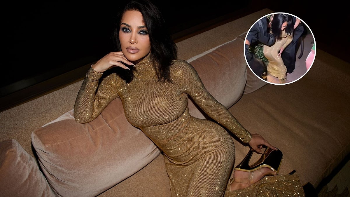 The moment, which she later shared herself, showed her grabbing onto a passer-by for support before bursting into laughter. “That poor lady. I grabbed her,” she added, clearly amused by the situation. Despite the slip, Kim kept her cool, brushed it off effortlessly, and continued walking like a pro.