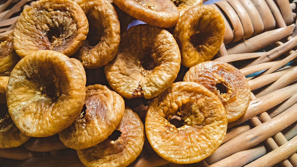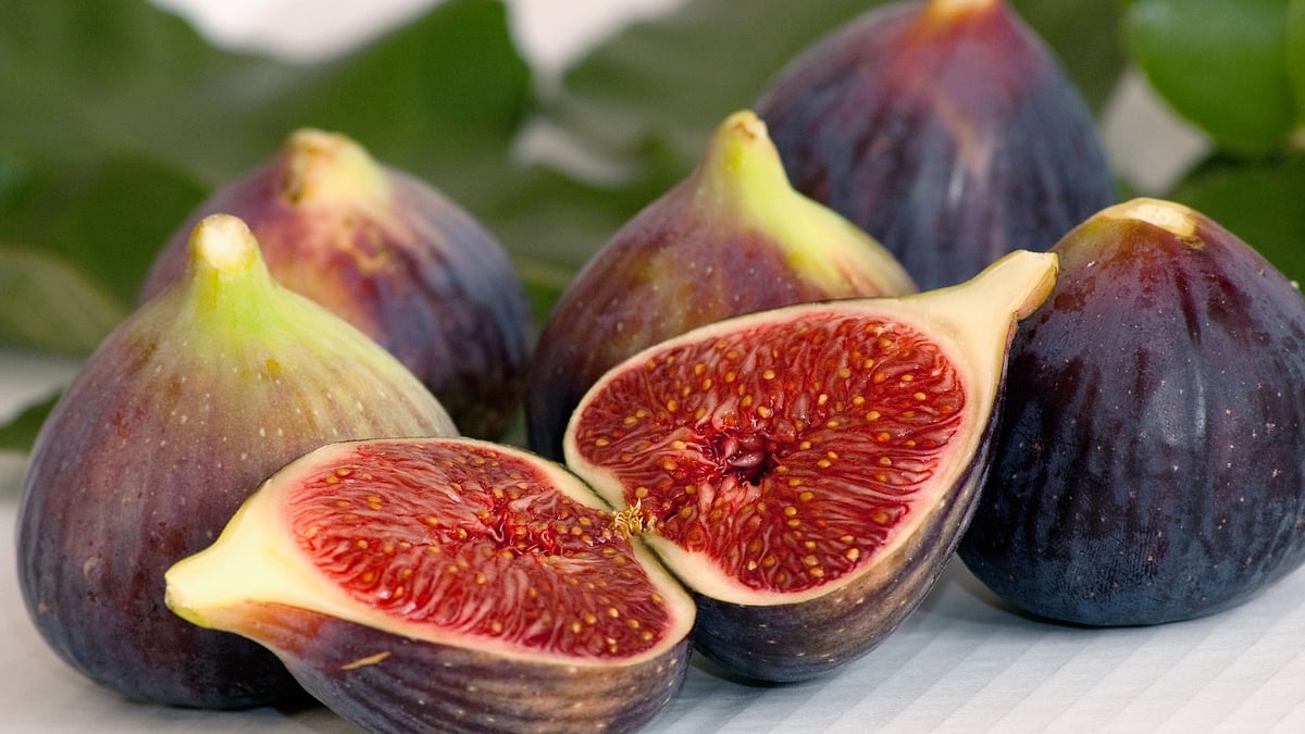 Figs are unique, tear-shaped foods traditionally grown in warm regions like Western Asia, North Africa, and Europe. Although often called fruits, figs are actually inverted flowers, with their blossoms hidden inside. They have a purple or green skin and red flesh. Fresh figs are mostly water and carbs, and can be eaten raw or dried, made into jams, or preserved. Dried figs last longer and are popular in India.