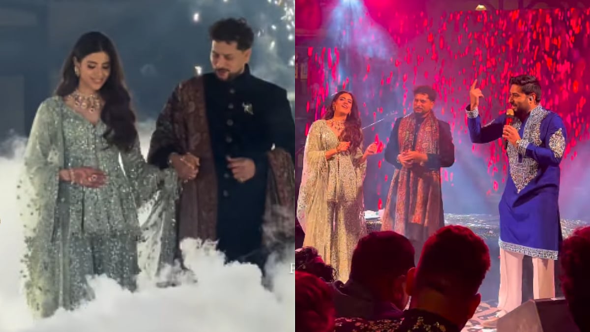 Cricketer Kuldeep Yadav and Vanshika Chadha's wedding festivities are buzzing on the Internet as the couple is set to marry in an intimate yet grand ceremony in Mussorie. After their Sangeet looks were revealed, videos from their grand entry and dance performances are winning hearts online.