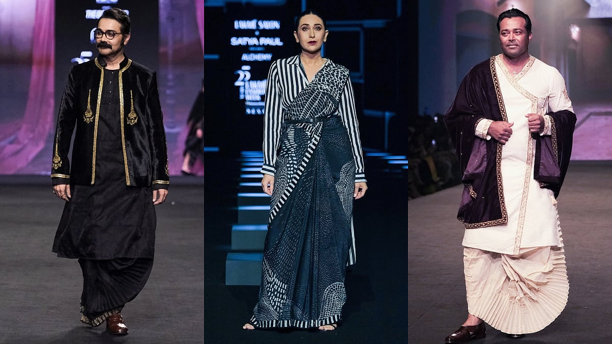 Headlining the runway on day two (March 27) were Nushrratt Bharuccha, Karisma Kapoor, Prosenjit Chatterjee and Leander Paes. Here's a recap and highlights of the second day of the couture show: