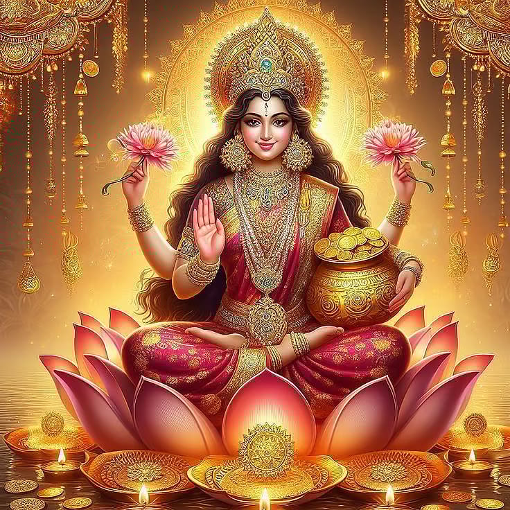 During the sacred festival of Diwali, Lakshmi Puja is a significant religious and cultural celebration. The goddess is a representation of prosperity, good fortune, money, and abundance. Worshipping Mata Lakshmi on this auspicious day is believed to bring prosperity and financial stability.