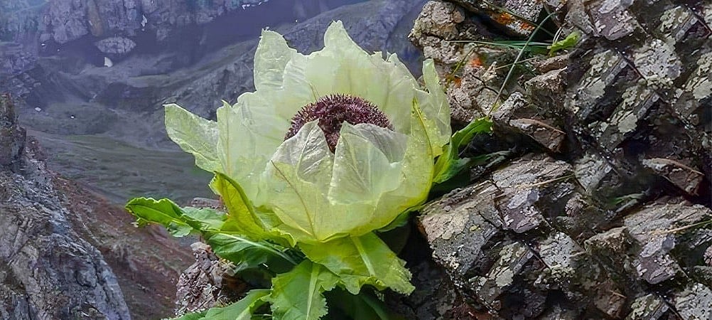 Saussurea laniceps, also known as cotton-headed snow lotus or snow lotus, is a rare flower that is only found in the Himalayan mountains, including Nepal, southwest China, Sikkim, Sichuan, Tibet, and Yunnan in China. The flower blooms at about 3,200 m altitude on alpine scree slopes. The flower came into the limelight after a video of a breathtaking snow lotus blooming majestically in the Tianshan mountains went viral on social media, leaving the internet spellbound.