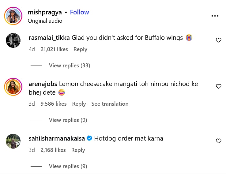 Another witty comment read, “Try ordering Kadhai Paneer next, they might just send raw paneer in a kadhai!”