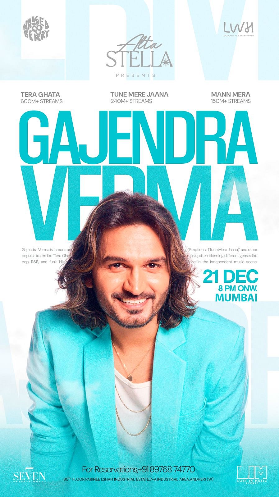 Music lovers can catch Gajendra Verma live for a special performance this weekend in Mumbai. Expect an intimate evening filled with hits like Tera Ghata, Tune Mere Jaana and Mann Mera, paired with stunning city views from the 30th floor.