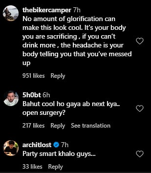 The video has ignited intense debate across social media. One user slammed the trend, writing, “No amount of glorification can make this look cool. It’s your body you are sacrificing. If you can’t drink more, the headache is your body telling you that you’ve messed up.”