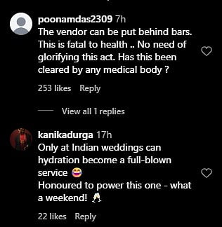 Many questioned the legality of offering medical drips at a private event. “The vendor can be put behind bars. This is fatal to health… Has this been cleared by any medical body?” one user asked.