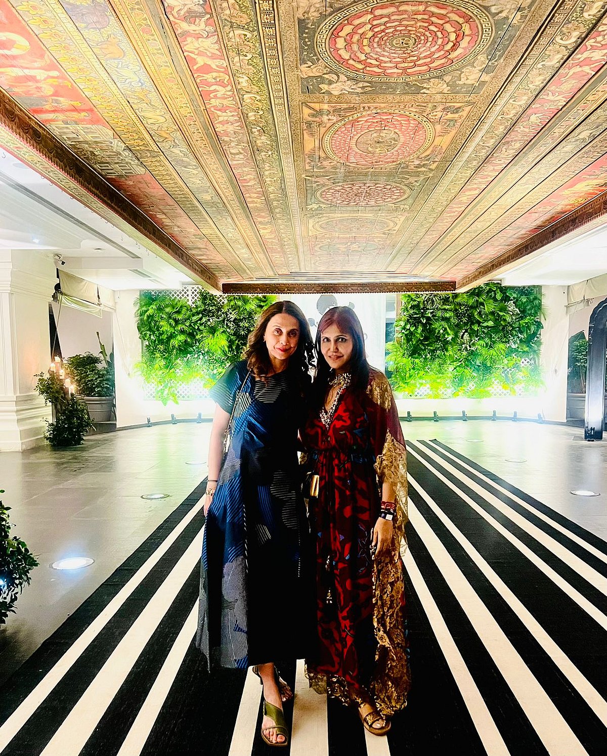 His canvases — geometric patterns that allude to nature with an almost meditative stillness — were displayed against the verdant backdrop of Keiba All Saints’ greenhouse like interior, replete with fountain and vines trailing the walls. And Akkitham, as ever, spoke softly: “Let the canvases do the talking. I won’t explain my work because my works will” The afternoon flowed naturally into tea, discussions about Art, and a gentle celebration of colour, form and quiet brilliance.