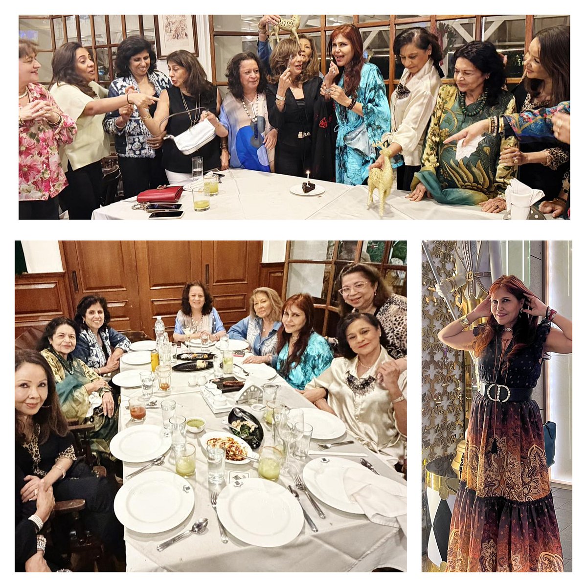 A memorable birthday dinner I hosted for one of my closest friends Nina Advani was a highlight of this week. Twenty women talked over one another before breaking into retro Andy Williams and Carpenters numbers with the pianist, picante in hand — laughter rising above melody, memories woven into music. Binu Boolani, Anjeli Hazare, Anu Shivdasani, Mithu Shivdasani, Natasha Hingorani, Minu Thadani, Sabrina Jagtiani and many other lovely Sindhi ladies danced up a storm in pretty floral frocks and some in figure hugging trousers!