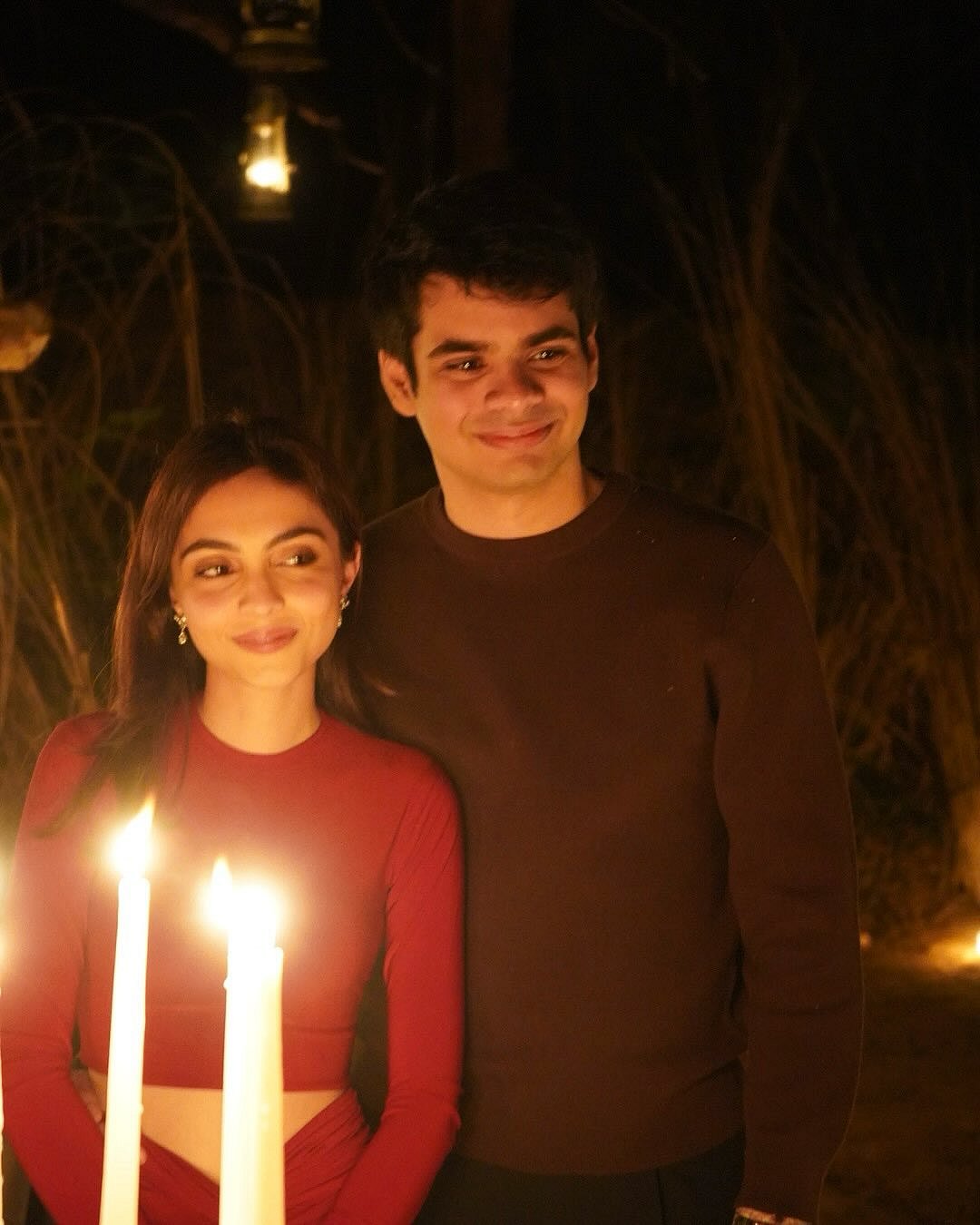 In one dreamy frame with a candlelit setting by the pool, the couple poses closely in coordinated black-and-white outfits. Aviva looks ethereal in a flowing off-shoulder white dress, while Raihan keeps it sharp and classic in a monochrome suit.