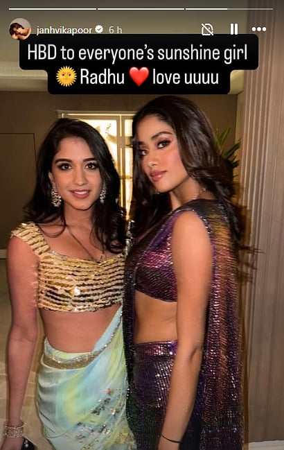 Janhvi Kapoor shared a candid picture with Radhika, calling her “everyone’s sunshine girl Radhu.”