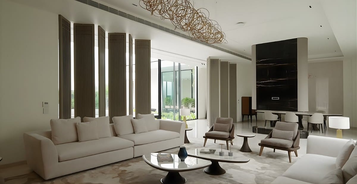 The interiors are all about understated luxury. High ceilings, neutral palettes and sleek finishes dominate the space, giving it a modern yet inviting vibe. Bedrooms are designed with minimal décor but maximum comfort, featuring soft tones, smart storage and contemporary lighting.
